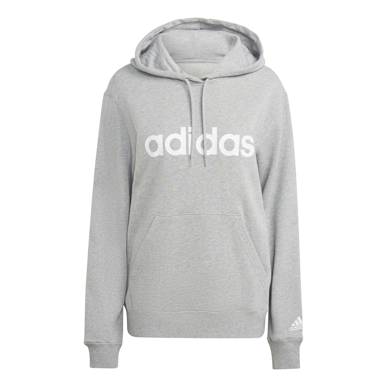 ADIDAS Essentials Linear Felpa Con Cappuccio Donna – Grigio Chiaro, Bianco