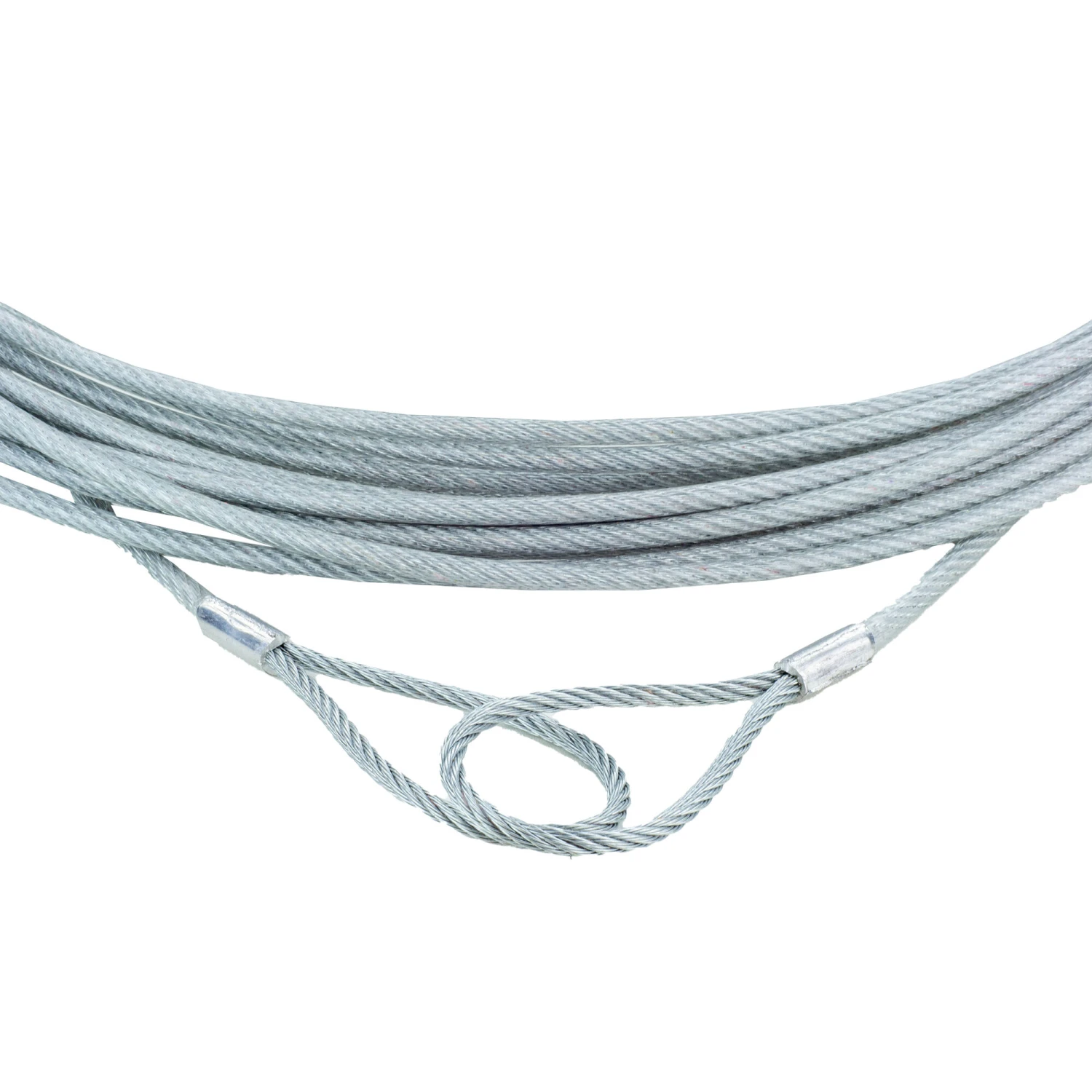 La fune d’acciaio è rivestita in PVC ed è dotata di asole ad entrambe le estremità.