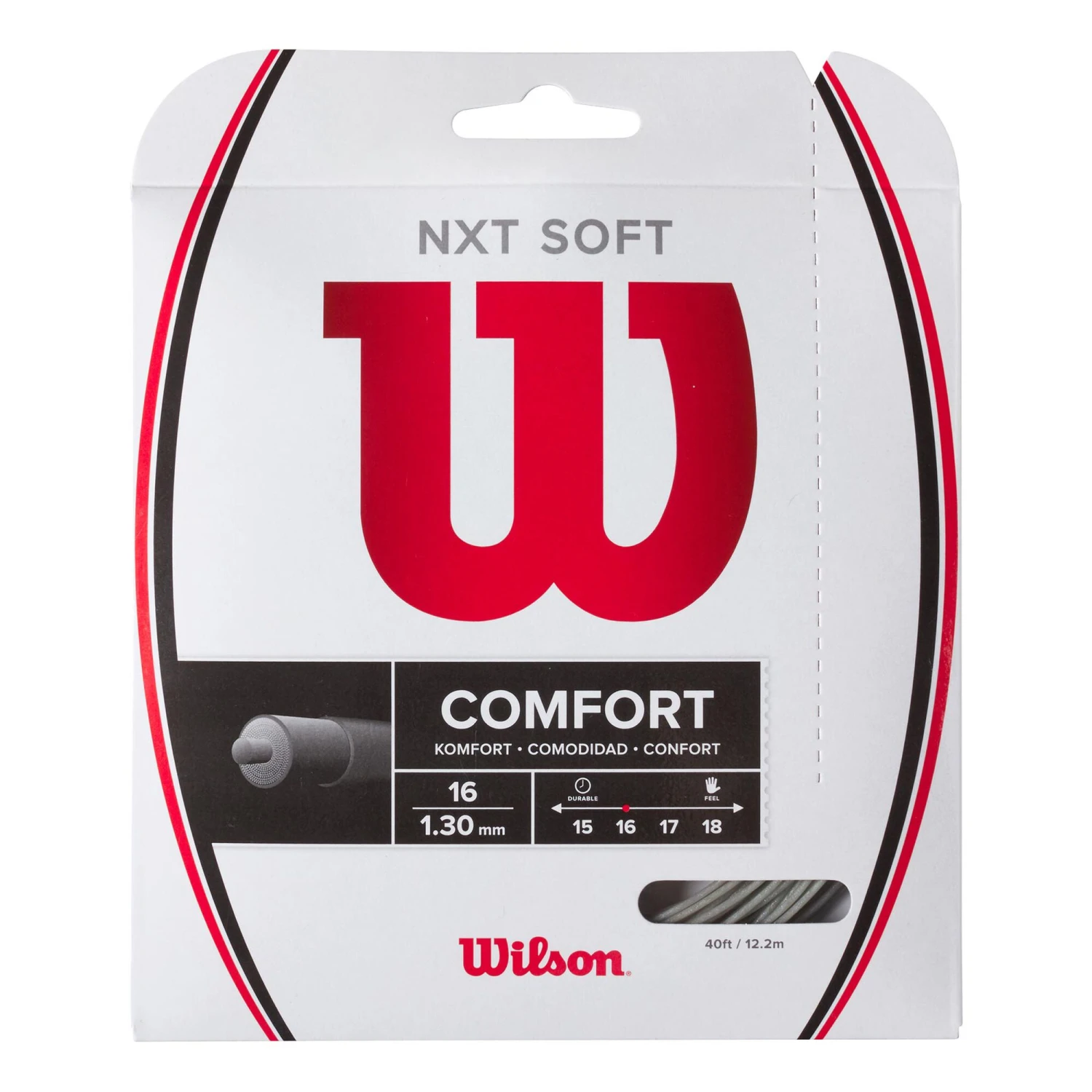 La corda da tennis NXT Soft offre precisione e comfort, una nuova versione della tradizionale linea NXT di Wilson. Questa corda è dotata di fibre più morbide con filamenti più lunghi per generare una potenza maggiore e fornire un eccezionale assorbimento degli urti per un comfort straordinario che non affatica il braccio e non sacrifica le prestazioni. La corda NXT Soft è ideale per le nuove racchette Ultra, ma può anche essere molto utile per i tennisti che cercano una corda multifilamento potente e confortevole.